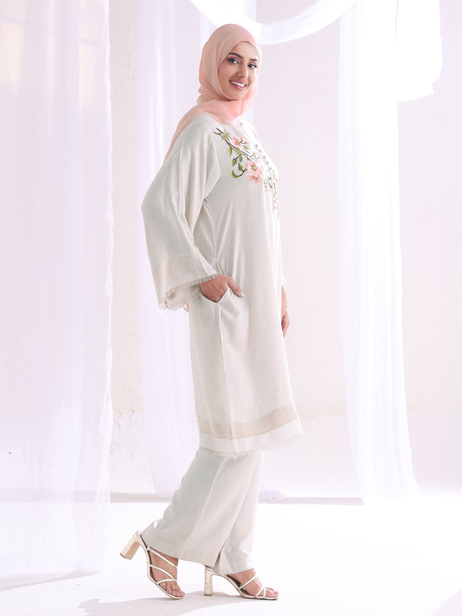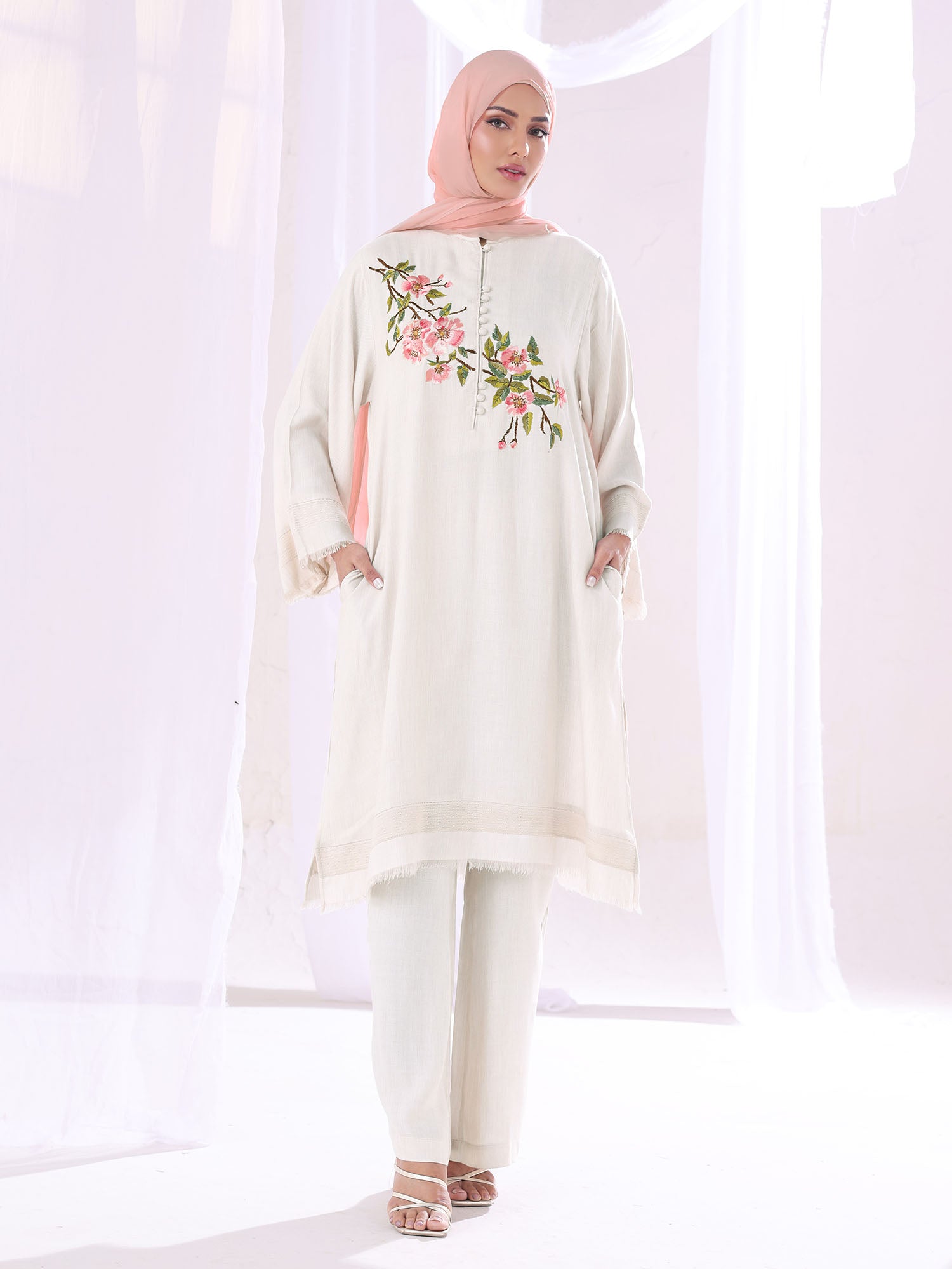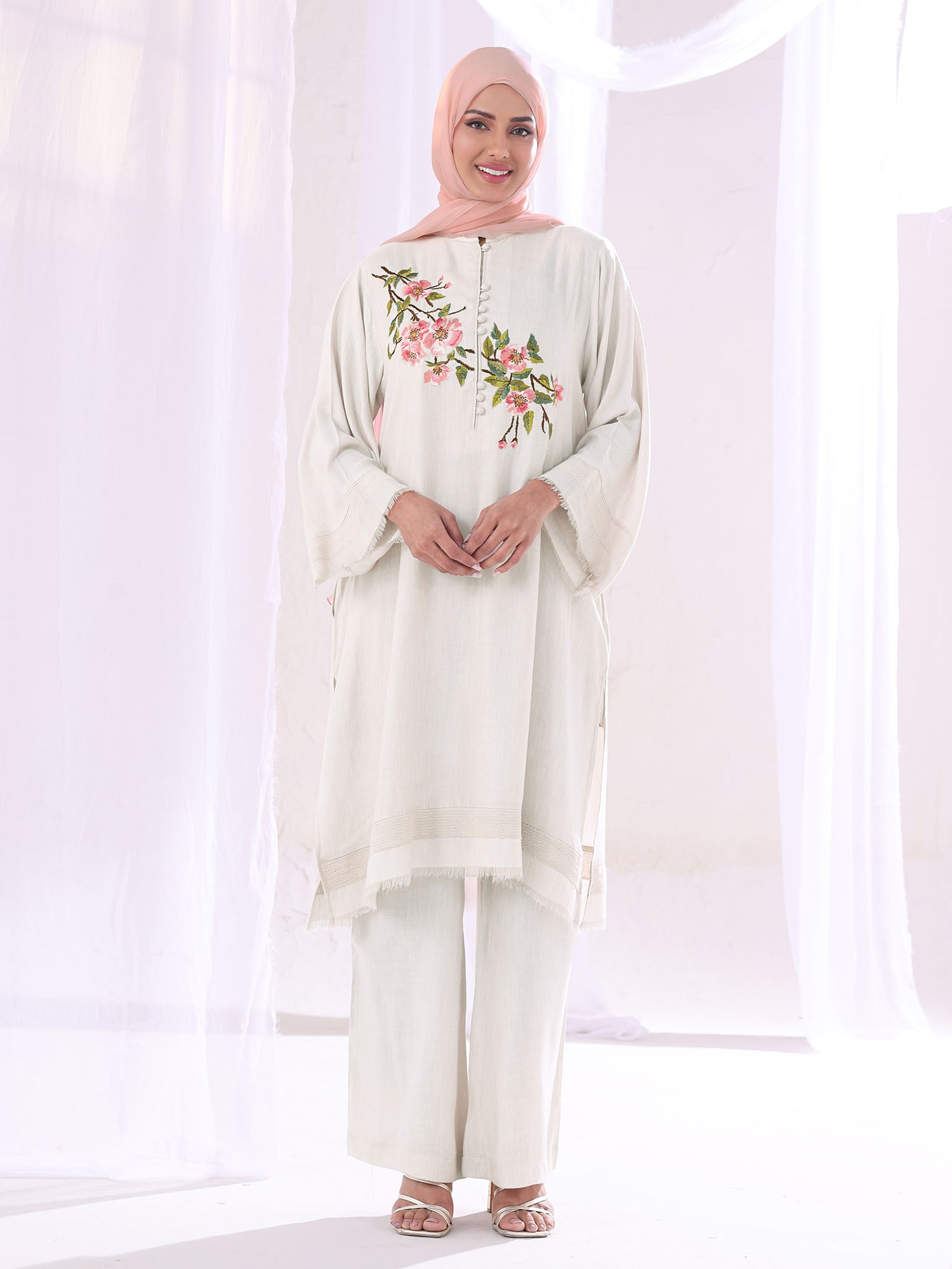 A serene cream Kahddi Viscose kameez and shalwar set designed for everyday elegance and comfort.